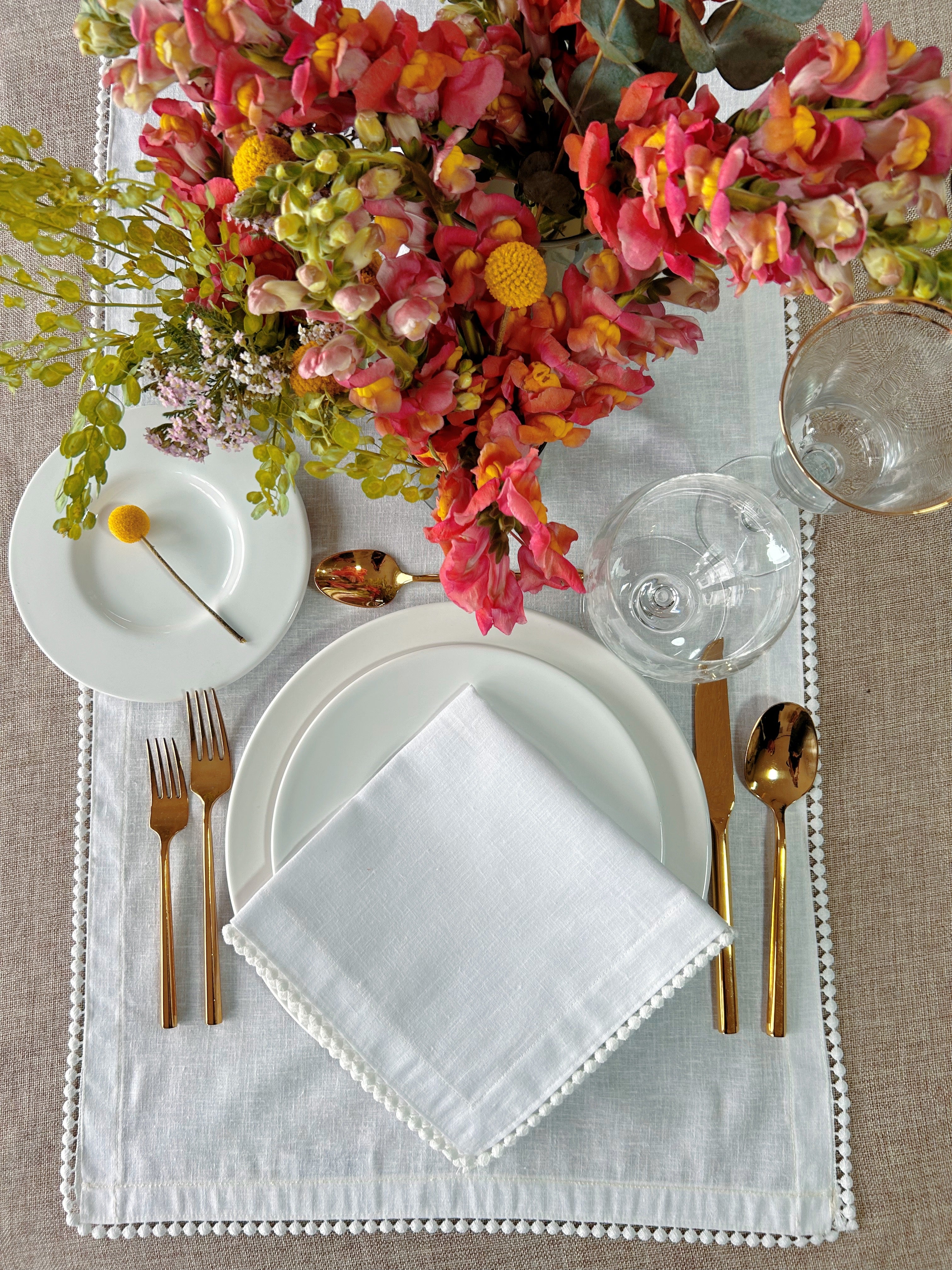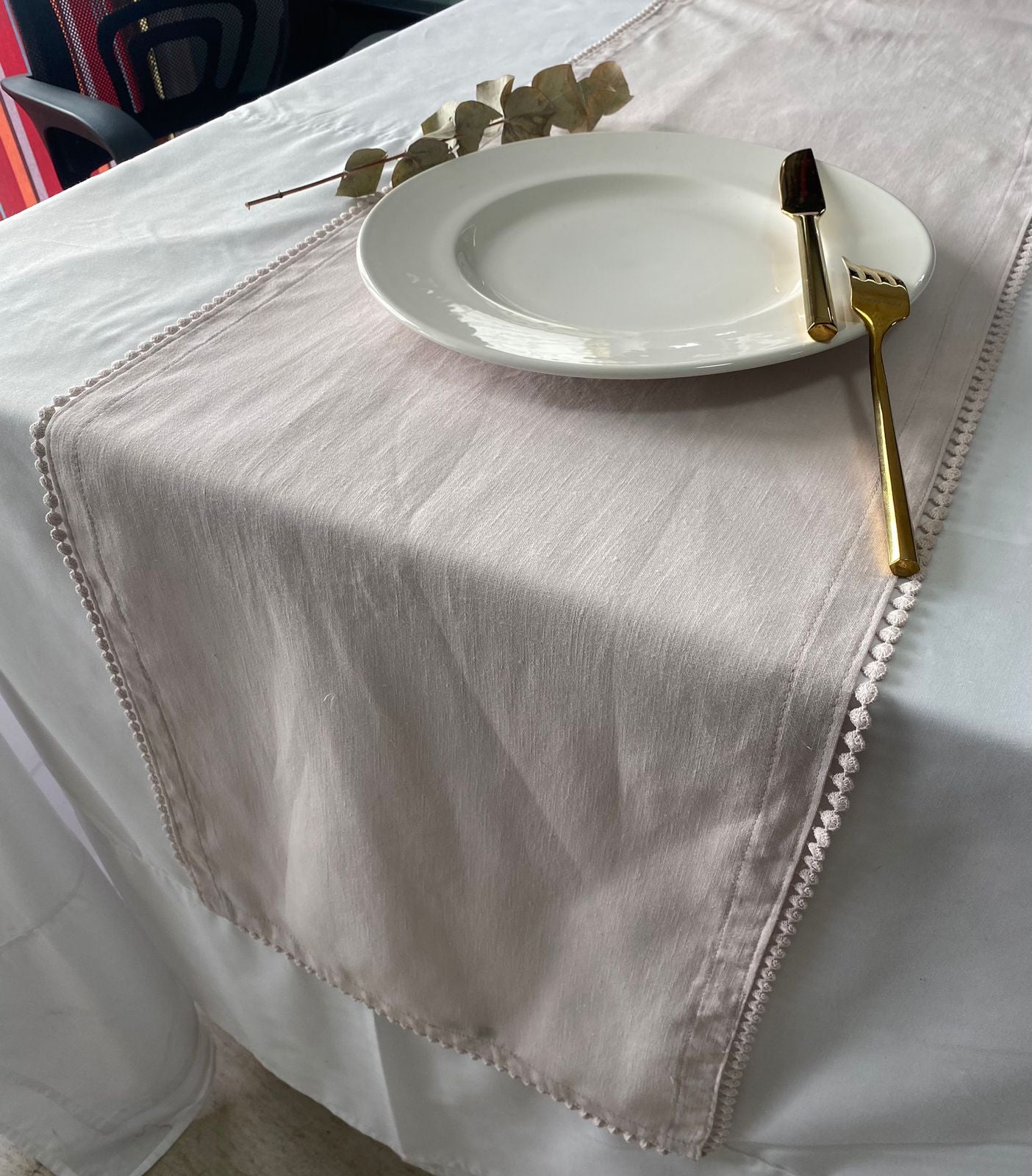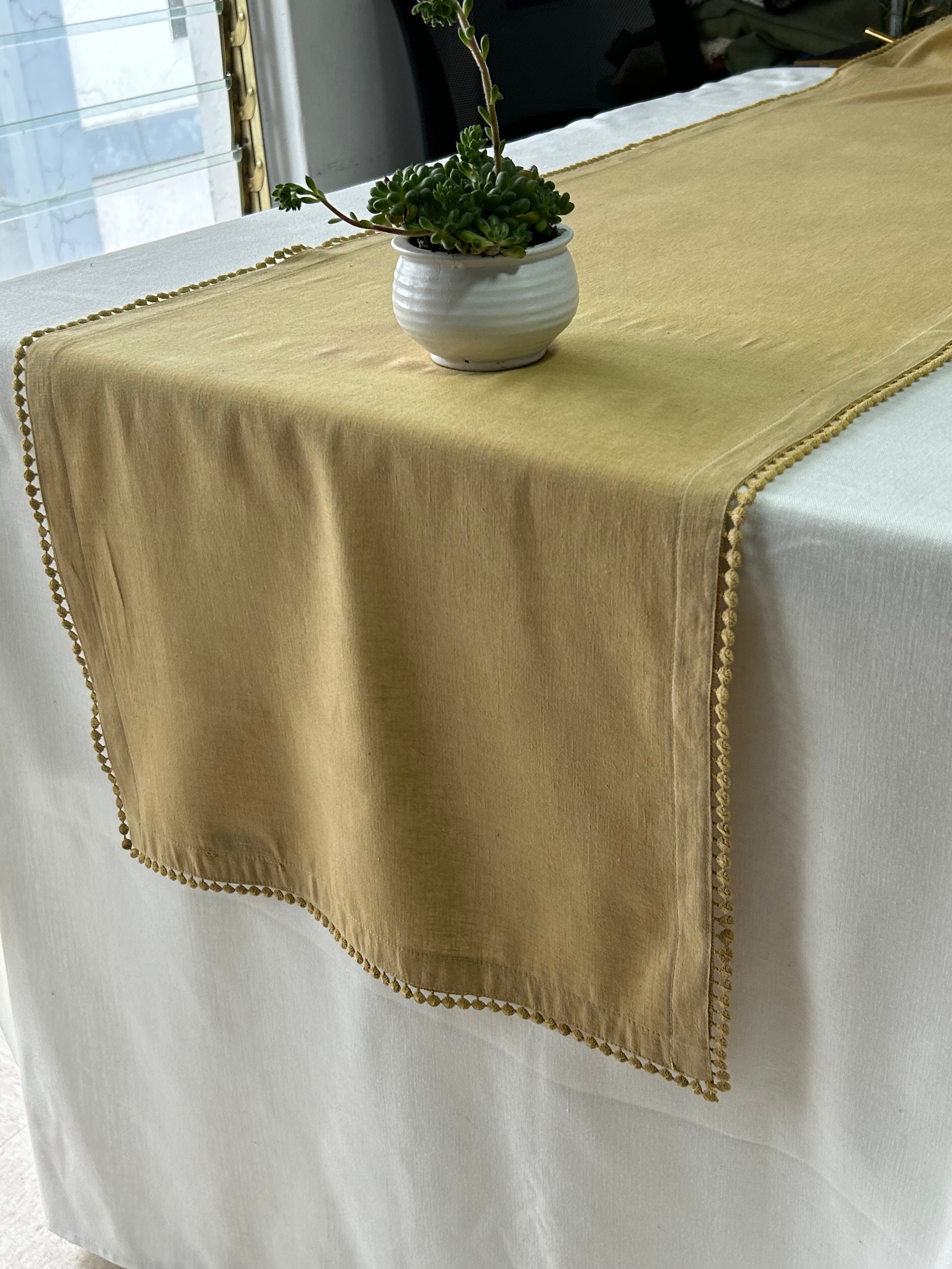 Caminos de mesa Linoblend Bolita teñido a mano.