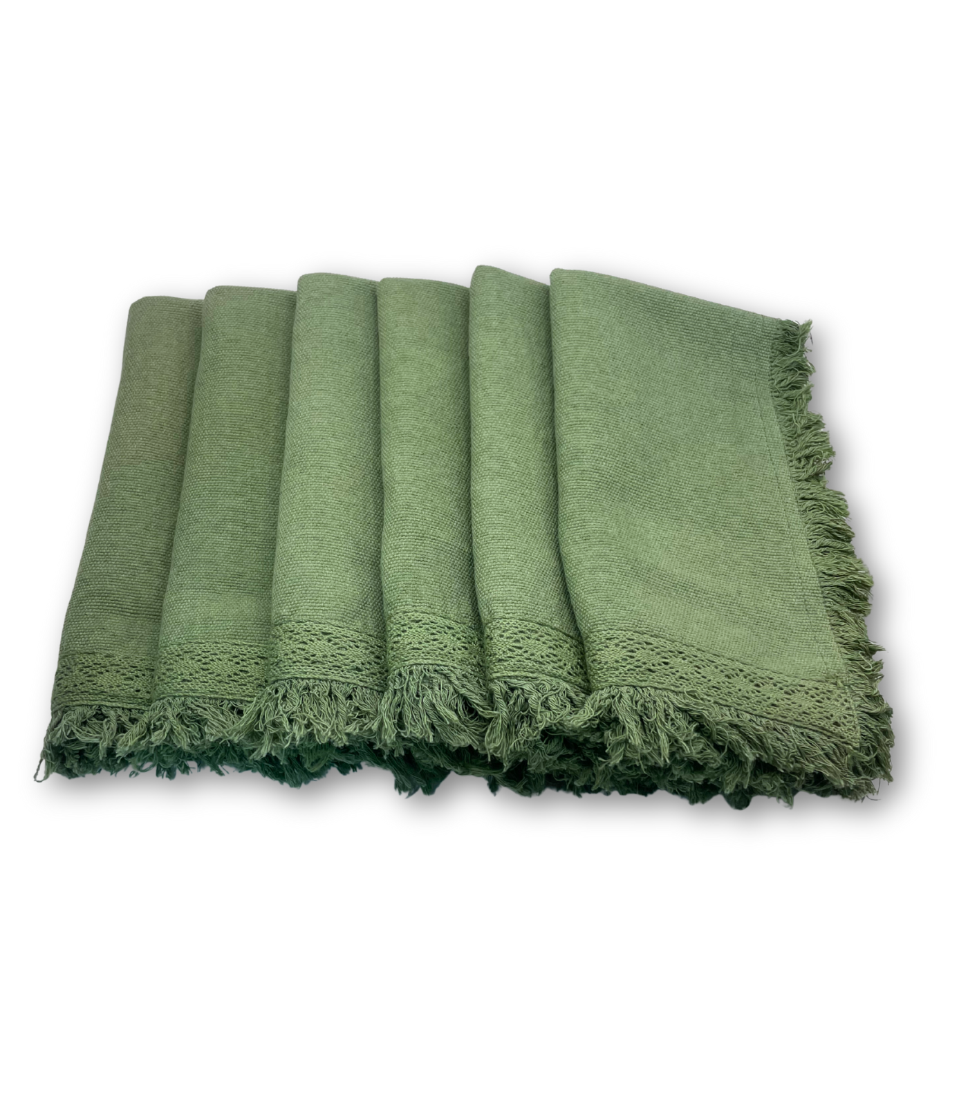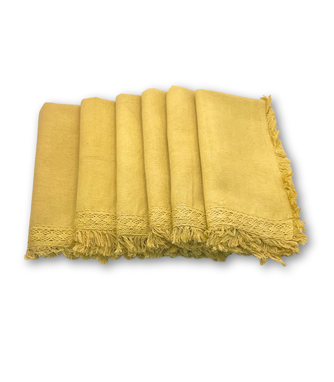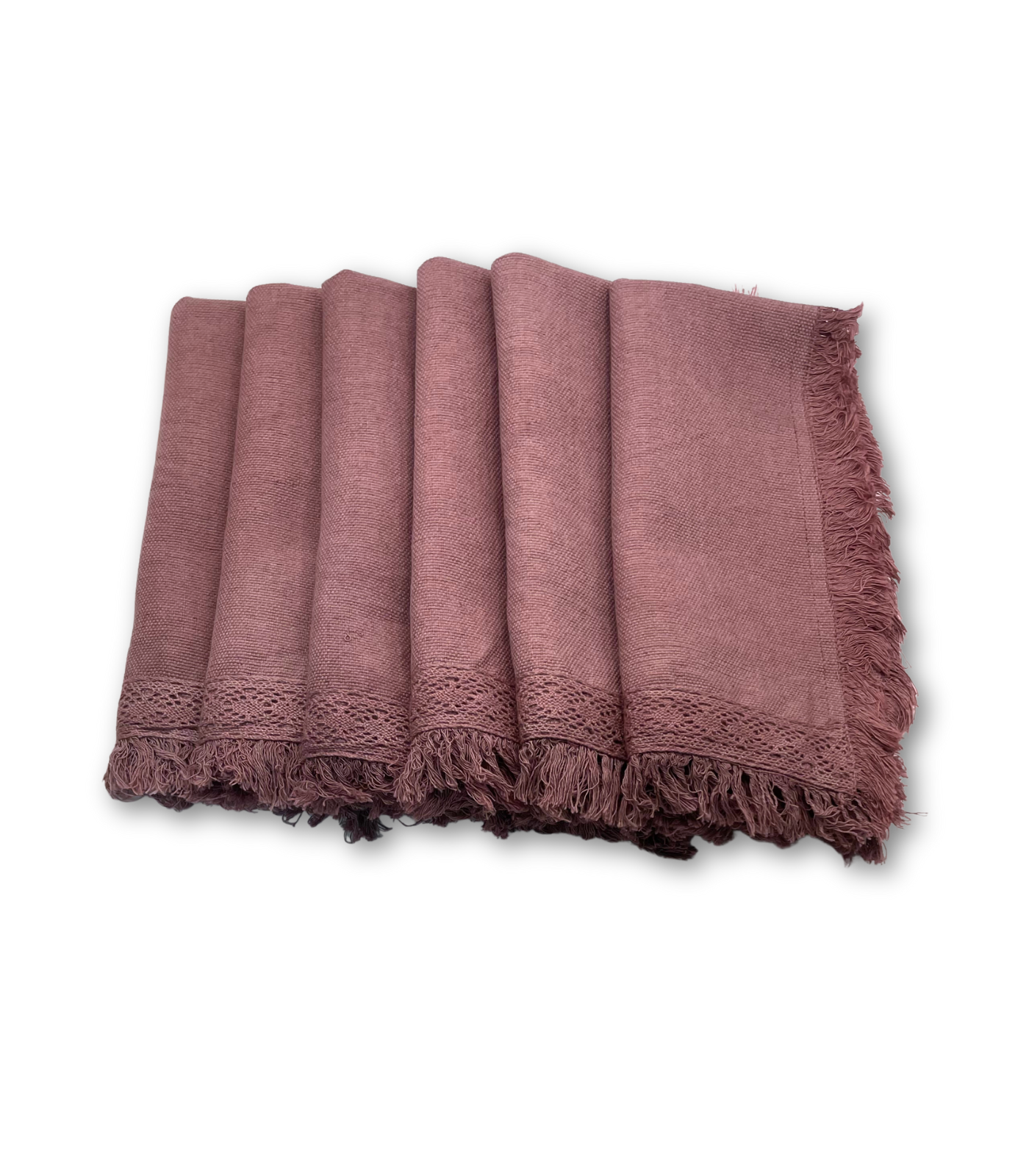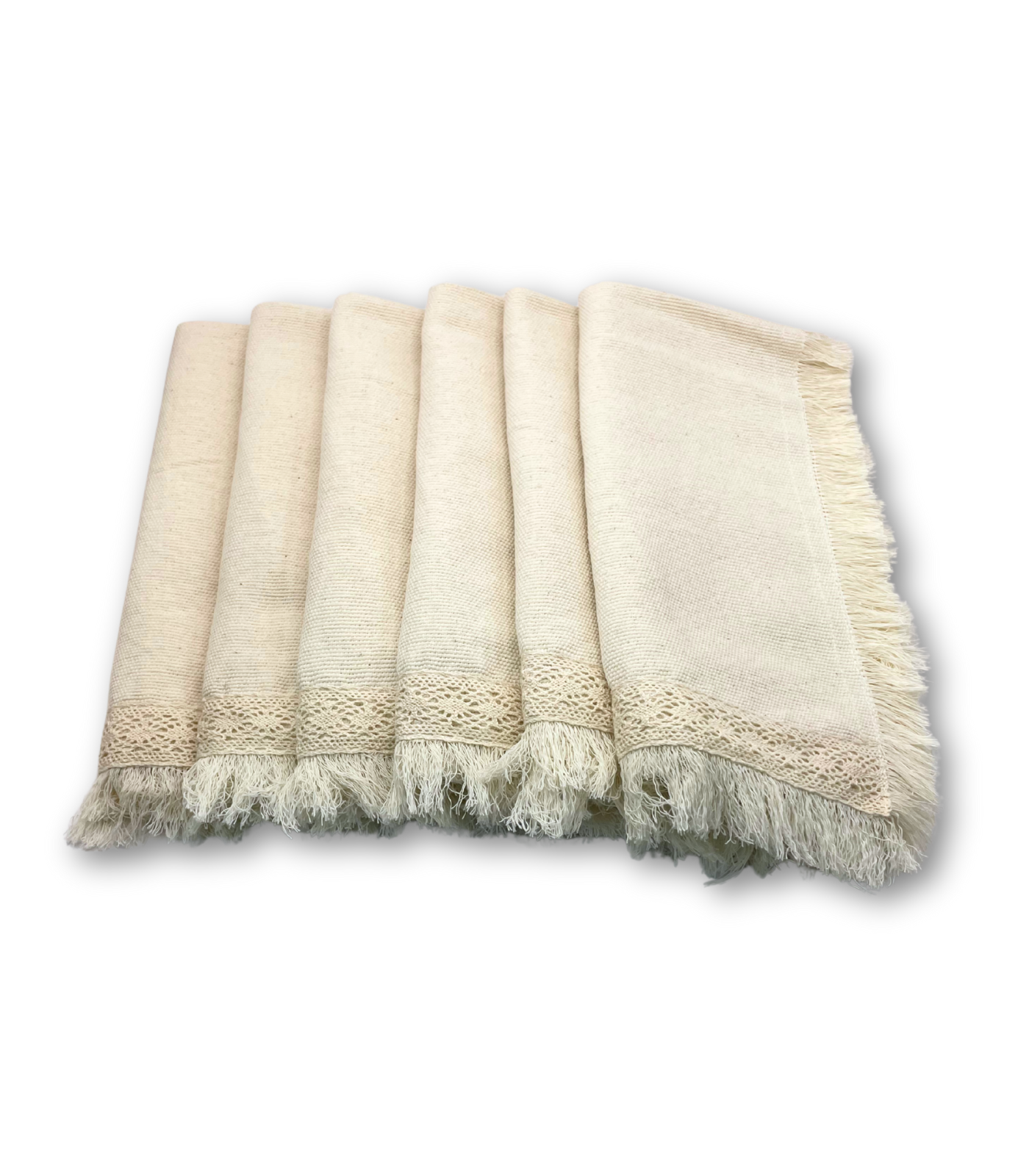 Servilleta “Ana” tela tejida en telar de pedal, con bolillo de algodón, dobladillo con doble costura y flecos deshilados, 100% algodón, cada servilleta es teñida a mano, y cuidadosamente deshilada por manos artesanas.
